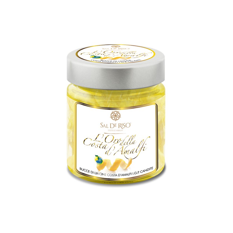 INGREDIENTI: Bucce di Limone Costa d’Amalfi I.G.P. (utilizziamo 2800 g di Limone Costa d’Amalfi I.G.P. per Kg di prodotto finito), zucchero bianco, sciroppo di glucosio.