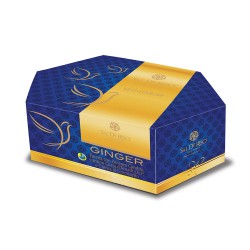 Stuffing: stuffing cream scented with Limoncello (27,00%) (glucose syrup, water, sugar, dextrose, skimmed milk powder, alcoholic Limoncello flavouring (1,25%), egg yolks, candied lemon paste, pectin), candied ginger (10,00%) (ginger, sugar, glucose syrup), candied Costa d’Amalfi I.G.P. Lemon skins (520 g of Costa d’Amalfi I.G.P. Lemon for each Kg of final product), essential oil.
